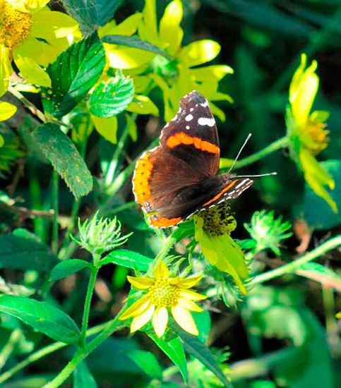 I would be remiss if I did not point out that monarchs are not the only butterflies that migrate. Buckeyes (above) and red admirals (below), along with other kinds of butterflies, migrate each year (not to Mexico like the monarchs but they do fly north and south following the warm weather).